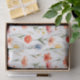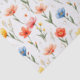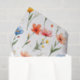 Hermosas flores azules, rojas, rosadas y amarillas flotan sobre un fondo blanco en este encantador papel tisú para cualquier ocasión. Muy dulce y femenino en apariencia.
