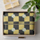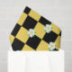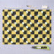 Un ilustracion sencillo y simétrico de flores en un tablero de ajedrez, de colores amarillo blanco y negro.