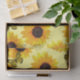 Las imágenes son girasoles pintados de aceite con mariposas voladoras, el color de fondo puede cambiarse si lo deseas