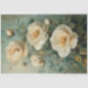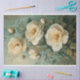 Flores botánicas crema sobre fondo verde sabio. Este diseño atemporal añade un toque de encanto floral clásico a los muebles o al arte mural.