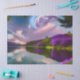 Papel De Seda Flores moradas Reflexión de la luna y el lago