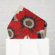 Grandes flores rojas y un fondo dorado en negro y beige.