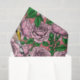 Patrón vectorial dibujado a mano con flores rosas y aves doradas. Todos los elementos del patrón se dibujan primero con tinta sobre papel y luego se vuelven a dibujar y colorean en Illustrator.