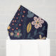 Papel De Seda Flores y hojas de animado arte popular en azul mar