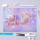Flores y huevos de Pascua en un colorido fondo pastel. 100% Personalización. Haga clic en el botón PERSONALIZAR para agregar, mover, eliminar, cambiar el tamaño o cambiar cualquiera de los tipos de letra o gráficos.