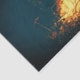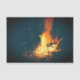 Papel tisular con una imagen de una hoguera en llamas / fogata. Azul oscuro - color negro con amarillo brillante, fuego naranja y rojo quemando algo de madera.