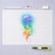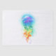 Grandes medusas de azulejo brillantes, de dibujos artísticos, con largos tentáculos en blanco, pintadas con fondo multicolor de acuarela. Mariscas arcoiris.