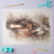 Una pintura acuarela de un caballo marrón de Clydesdale que galopa capta la majestuosa belleza y fuerza de este hermoso animal.