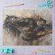 Una pintura acuarela de un caballo negro galopando capta la majestuosa belleza y fuerza de este hermoso animal.