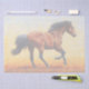 Caballo de mustang salvaje que corre a través de un campo seco de hierba. Obra de arte realista creada a partir de una pintura al óleo original del artista de la fauna y la flora silvestres Crista S. Forest.