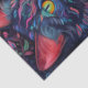 Un ilustracion colorido de un gato con colores y patrones brillantes. Ideal para envolver o desacoplar regalos y proyectos artesanales.