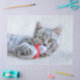 Papel de tejidos con una linda fotografía de Navidades de un gato gris manchado mordiendo juguetamente un sombrero rojo de santa. Sus grandes patas esponjosas hacen que esta foto sea extra deliciosa.