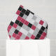 Este papel de tejido colorido presenta un divertido patrón geométrico en Viva Magenta, de moda, negro, gris y blanco, con rejilla blanca. Los cuadrados están coloreados en un patrón aleatorio y se pueden editar los colores en la herramienta Diseño.