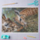 Esta imagen cautivadora digital, titulada "Savannah Bonding", muestra a una jirafa madre y su ternera joven en un campo soleado. La cariñosa mirada de la madre se fija en su descendencia, garantizando su seguridad y guiándola a través de la hierba alta. La ternera, con sus ojos inocentes y sus delicados rasgos, se encuentra cerca de su protector, enclavada en la comodidad de su sombra. El telón de fondo de la sabana está vivo con el ruido de las hojas y el suave zumbido de la naturaleza salvaje, que resume la esencia de la existencia de estas criaturas magníficas. Esta fotografía es un testimonio de la relación de crianza que existe dentro de la familia de la jirafa, ambientada en el fondo de su majestuoso y natural hogar.
