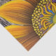 Representación abstracta estilizada de un girasol con líneas de barrido audaz y llamativos contrastes de color. El girasol, decorado en tonos dorados, amarillos y naranjas, se encuentra sobre un bonito fondo rústico de barnboard.