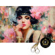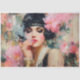 Canaliza la elegante sensualidad de los felices años veinte con este papel de decoupage que presenta a una glamurosa flapper adornada con perlas, acentos dorados y un audaz tocado floral. Con un porta cigarrillos en mano y una bruma soñadora de flores pictóricas en el fondo, este diseño inspirado en la vintage es perfecto para la decoración de bares de lujo, eventos de la era del jazz, artesanías de speakeasy y proyectos DIY de glamour femenino.