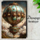Agregue un toque artístico a sus espacios con el papel de decoupage de globo fantástico de alta calidad de Decoupage_Boutique. Este diseño extraordinario presenta un globo aerostático steampunk ornamentado con detalles intrincados de latón, paneles turquesa y adornos decorativos contra un dramático cielo nublado. Este diseño crea un punto focal elegante perfecto para estudios, restaurantes temáticos o espacios inspirados en la época victoriana. COMBINACIONES DE COLORES: azul turquesa, dorado antiguo, bronce rico, blanco crema y gris tormentoso realzan la belleza natural. CARACTERÍSTICAS DEL DISEÑO: detalles ornamentados de metalistería, viñetas de paisajes fantásticos y una perspectiva dramática del cielo aportan profundidad a sus proyectos. PERFECTO PARA: cajas del tesoro, paredes de acento, cubiertas de libros, salas de escape, mesas auxiliares y pantallas decorativas. Ideal para una variedad de proyectos tanto grandes