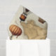 Un ilustracion nostálgico de un globo de aire caliente flotando con gracia sobre un terreno rústico. El papel tisular capta la estética vintage y retro con texturas templadas, tonos de tierra muda y encanto del viejo mundo. Perfecto para evocar la lujuria, la exploración y la aventura atemporal con un toque de antigüedades.