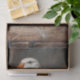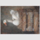 Un cuadro rústico de un ganso blanco anidando sobre un cajón de madera, mezcla el encanto de una casa de campo con la simplicidad de la vida rural.
