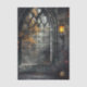 Gothic arched window entwined with trailing ivy, inspired by old cathedrals and forgotten gardens. Lit by lamplight. Featuring lead-paned detailing and rich shadowed tones, this decoupage tissue paper adds an elegant, slightly eerie beauty to furniture, journals, and mixed-media projects.