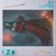 Where beauty meets decay — this Gothic Christmas Bride stands beneath a crimson moon, draped in a flowing red gown and holding a poinsettia bouquet. Surrounded by candlelight and shadowed iron gates, she brings an elegant darkness to the season, blending holiday symbolism with haunting romance.