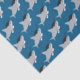 Papel de papel tisular de graduación divertida con un patrón adorable, tiburones con gorras de graduación con diplomas de fondo azul. Simplemente agrega varias hojas a tu carrito, llévalas a casa, y luego úsalas para tus regalos. Diseño de papel de posgrado de tiburón divertido | ©Melissa Patton - Artista/Ilustrador