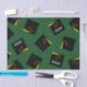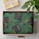 Regalo de graduación creativo o tapones de graduación de tejido fiesta negro y dorado sobre un fondo verde. Editar texto para agregar año de clase superior