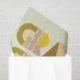 Retro-style graduation gift wrapping tissue paper that features the word "GRAD" designed with geometric shapes in various colors. Retro colors—yellow, pink, brown, and green—add to the retro style.