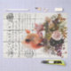 Una cerda dulce, Duroc y su lechón detrás de un ramo de flores morado y rosa. Camarera, vintage, victoriano, con carteles en un fondo de tablero de madera, blanco y gastado. Perfecto para una casa de campo rústica o para un ambiente campestre francés, sobre todo haciendo artesanía de despuchadores.