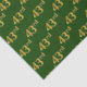 Este diseño de papel tisular presenta el número ordinal "43" con un colorante falso/imitación de color dorado. También cuenta con un fondo de color verde. Tal vez se podría usar con regalos que se dan para el 43° cumpleaños de alguien, o tal vez para el 43° aniversario de una pareja casada, o para algún otro evento u ocasión 43. [~Z0000153]