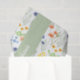This tissue paper features a watercolor wildflower pattern in shades of green, yellow, orange, and blue.