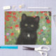 Tejido con un gatito de Gustav Klimt! Este gatito negro lleva un collar de plata y se sienta en un campo de flores rojas, azules, blancas y amarillas. ¡Un regalo maravilloso para los amantes del gato y del arte austriaco!