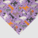 Cute White cat, black cat, tabby cat, Persian cat, Siamese cat and tuxedo cat wear witch hats and Halloween costumes with scattered bats and paw prints.