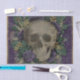 Calavera vintage con rosas morados profundos y follaje mudo, arreglado como un diseño dramático de hoja completa. Perfecto para la desconexión, las revistas basura o los proyectos artesanales inspirados en Halloween donde una imagen impactante hace el impacto.