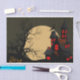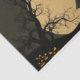 La casa embrujada y el papel de los tejidos de Halloween de luna llena presentan la casa embrujada, luna llena, cielo nocturno, árbol muerto y calabaza sonriente. Un diseño perfecto para Halloween.