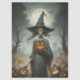 Papel De Seda Haunting Fantasy Gothic Witch, Pumpkins & Moon