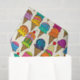 ¡Tu regalo será aún más dulce cuando lo envuelvas en este colorido patrón de helados! Incluye cucharas de fresa, vainilla, lima, arándano, naranja y más, en conos y platos.