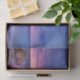 Papel de tejidos con una preciosa fotografía con llamativos colores morados, azules y rosas al atardecer. Una línea costera de bonito con rocas.