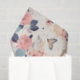Papel de tejidos con un bonito patrón de temática francesa. flores de bonito y una torre Eiffel y mariposas. Los colores son rosa, azul, melocotón y crema.