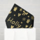 Un Papel De Tejido De Fun Negro Y Oro Divertido Patrón De Corazones Y Copos De Nieve Y Las Palabras Holly Jolly En Oro