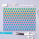 Huevos de Pascua en azul sobre papel pintado de arcoiris pastel.