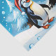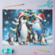 Pingüinos bonitos con un alegre estilo personalizado, todos con sombreros de Santa Claus festivos. Se alinean alrededor de un magnífico árbol de Navidad, decorado con adornos coloridos de varias formas y tamaños. Una gran estrella dorada brilla en la parte superior del árbol, dándole a toda la imagen un resplandor festivo. Este diseño capta la esencia de los Navidades de manera lúdica, transmitiendo una sensación de calor, alegría y comunidad en medio de un paisaje invernal.