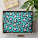 Artsy, moderno, de moda, y dibujado a mano con un patrón de impresión de animales leopardo dibujado a mano negra y femenina sobre un fondo azul ciano. ***NOTA DE DISEÑO IMPORTANTE: Para cualquier solicitud de diseño personalizado, como solicitudes de productos coincidentes, cambios de color, cambios de posición o cualquier otra solicitud de cambio, haga clic en el botón "CONTACTO" o envíe un correo electrónico al diseñador directamente a lafemme.art@gmail.com. Incluso puede enviarle un correo electrónico solicitando un diseño completamente personalizado y nuevo.