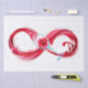 Símbolo infinito de flujo continuo de vino tinto vertiendo en vidrio de vidrio sobre fondo blanco.