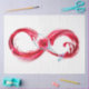 Símbolo infinito de flujo continuo de vino tinto vertiendo en vidrio de vidrio sobre fondo blanco.