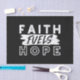 This inspirational typography design features the short yet powerful quote “Faith Fuels Hope.” A meaningful reminder of trust, belief, and encouragement, inspired by Christian values. Perfect for Christian apparel, wall art, stickers, mugs, and gifts for believers, church groups, or anyone seeking hope and motivation through faith.