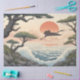 Papel De Seda Japanese Rocky Coast Sunset Landscape and Egret