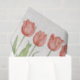 Una fila de las floraciones rosadas coralinas bonitas de los tulipanes a través de este papel seda con una capa de la textura del crujido. Diseñado por el artista renombrado Tim Coffey del mundo.