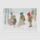 Un ilustracion de Navidad absolutamente adorable y vintage de niños liberando lechones en un maravilloso bosque de nieve.