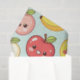 Add instant joy and playful charm with this adorable kawaii fruit pattern! Cheerful cartoon fruits smiling red and golden apples, happy green pears, bright yellow bananas, pink-cheeked peaches, and sweet cherries all with big sparkling eyes and rosy blushes, scattered across a soft pastel mint background.